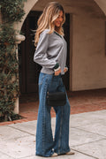 Ribbed V Neck Braided Print Long Sleeve Regular Sweatshirt
