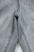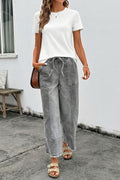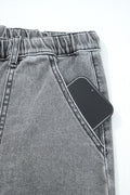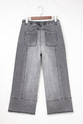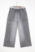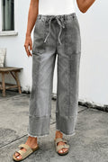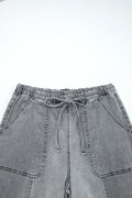 Gray Drawstring Seam Detail Raw Hem Wide Leg Denim Pants