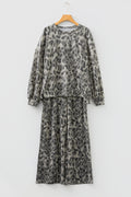 Gray Leopard Print Raw Seam Patchwork Pullover Drawstring Loose Pant Set
