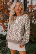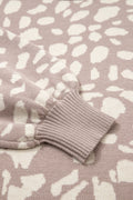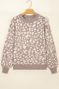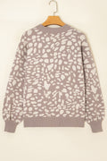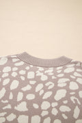Gray Leopard Spots Pattern Ribbed Trim Drop Shoulder Sweater
