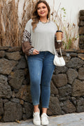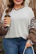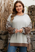 Gray Plus Size Leopard Color Block Patchwork Dolman Sweatshirt
