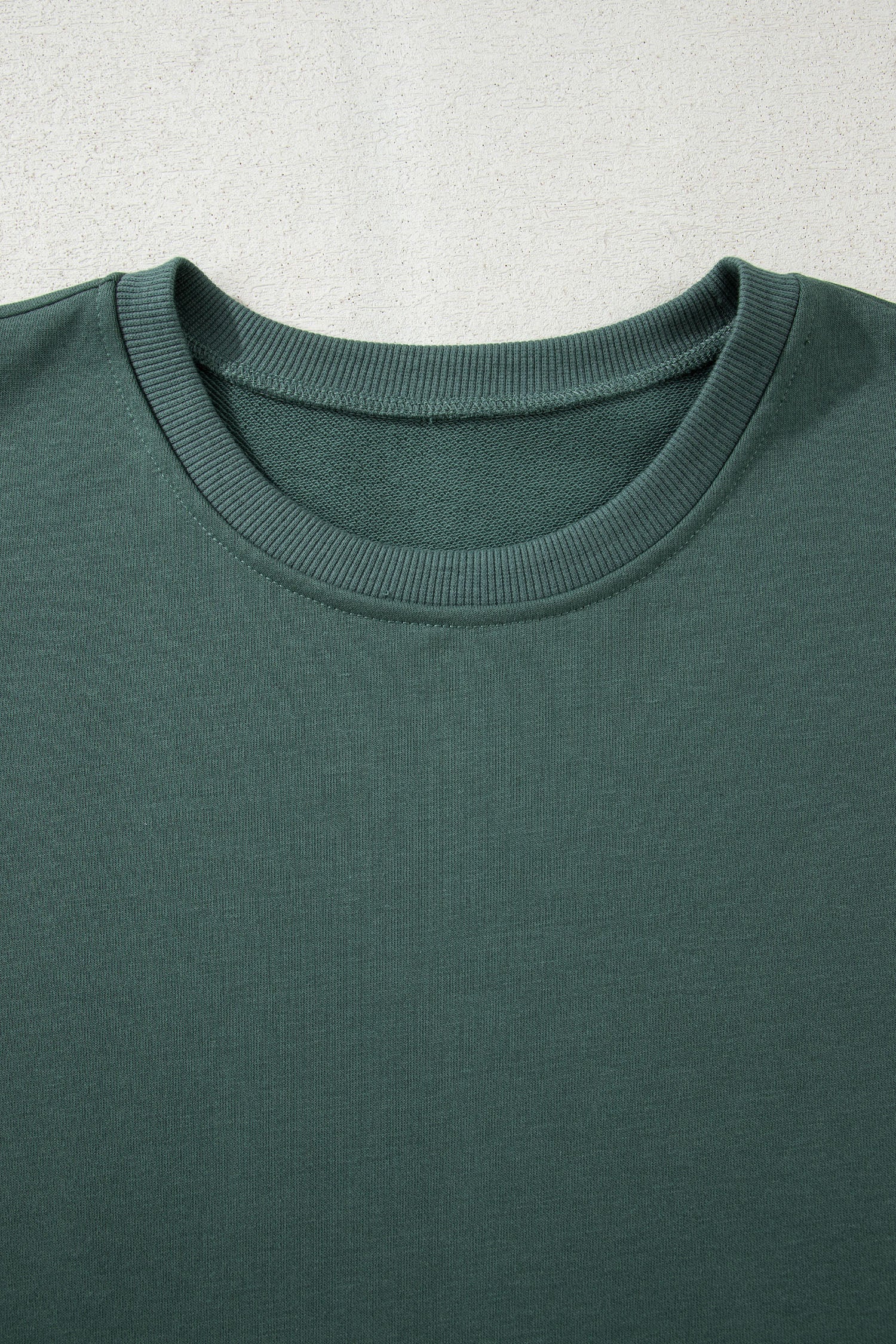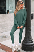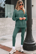Green Bay Solid Color Oversize Slit Sweatshirt Ribbed Leggings 2pcs Set