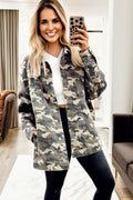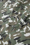 - Camouflage print adds rugged style with outdoor appeal.Multiple chest pockets offer practical storage space.Loose fit allows comfortable layering over sweaters.Denim fabric provides durable wear with classic versatility.