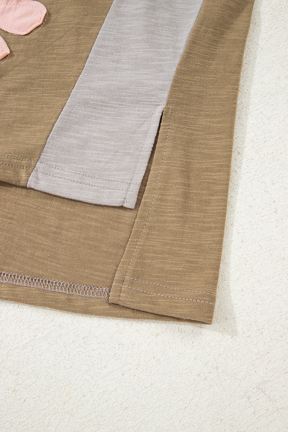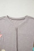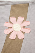 - Flower patched details for a feminine touch.Unique exposed seam design adds a trendy twist.The drop shoulder and bracelet sleeve add a laid-back flair.Oversized fit for a comfortable and relaxed look.
