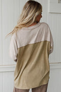 Sale Women's Color Block Quarter Zip T-Shirt - Casual Long Sleeve Top