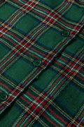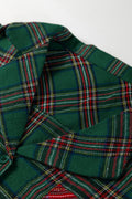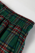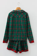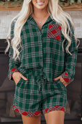 Green Plaid Contrast Patched Christmas Holiday Long Sleeve Shirt and Short 2pcs Pajama Set