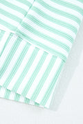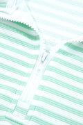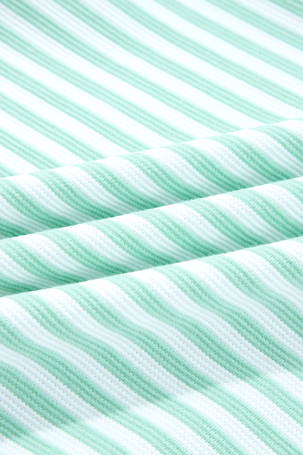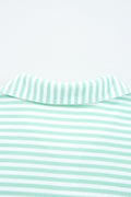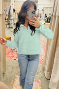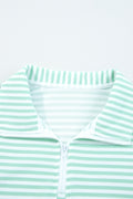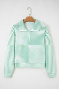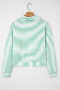 Green Stripe Quarter Zip Collar Pullover Long Sleeve Top