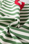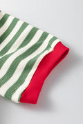 Green Stripe Short Puff Sleeve Contrast Trim Round Neck Tee