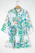 Green Tribal Bracelet Sleeve Buttoned Mini Dress