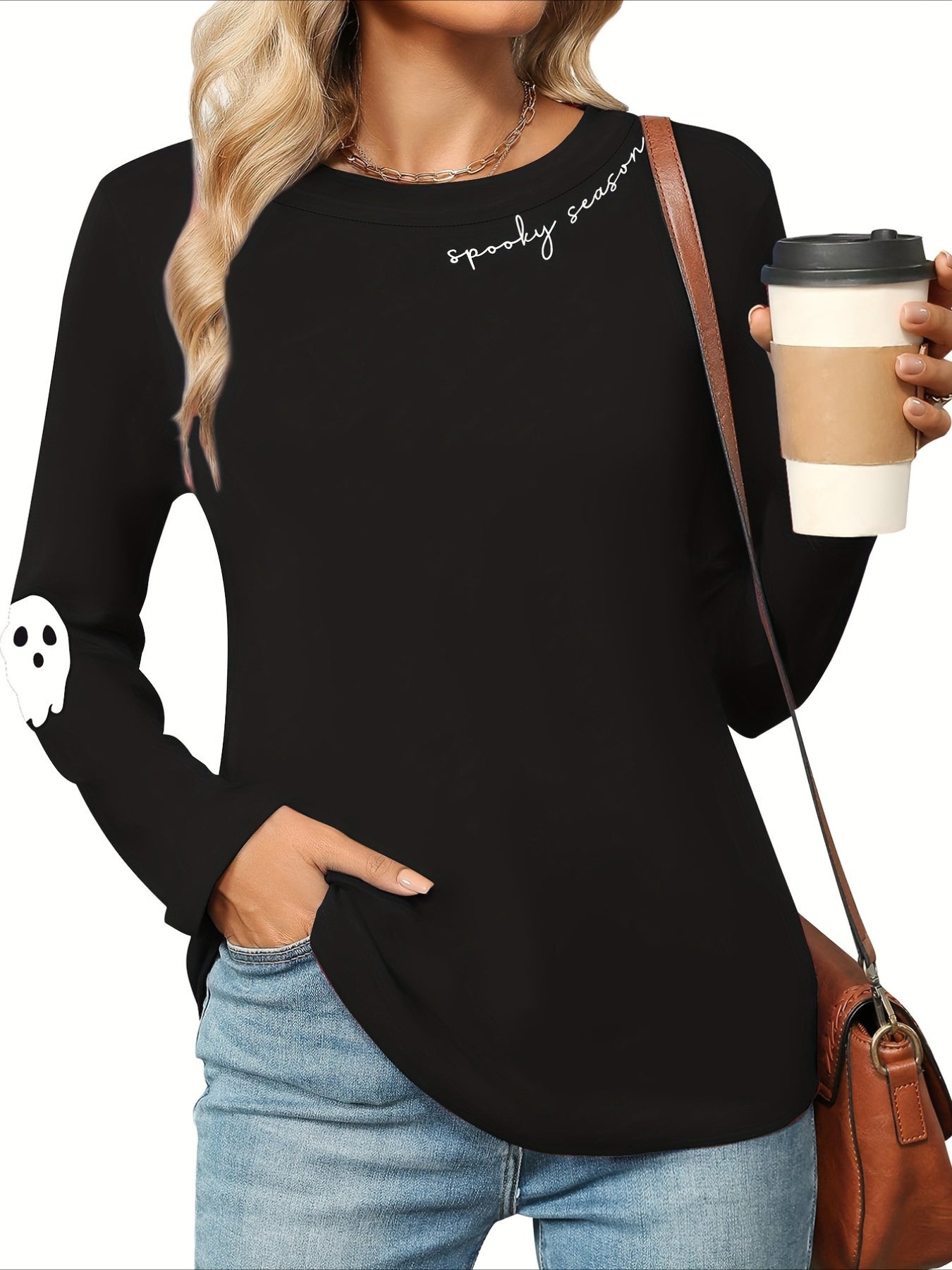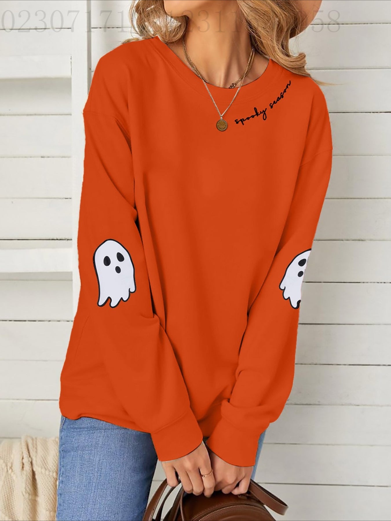 Halloween Round Neck Long Sleeve Loose Fit Top