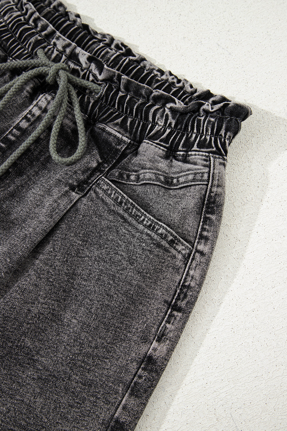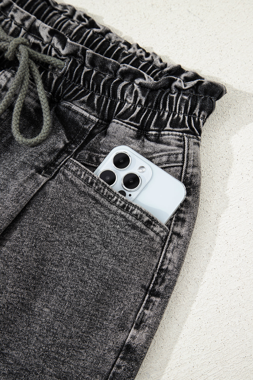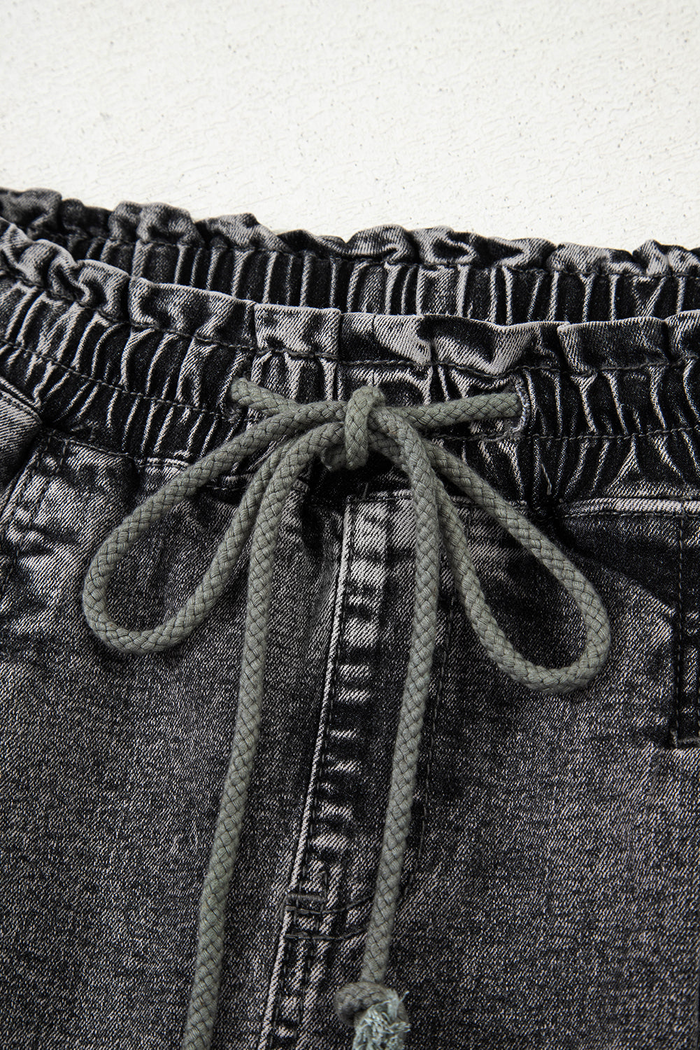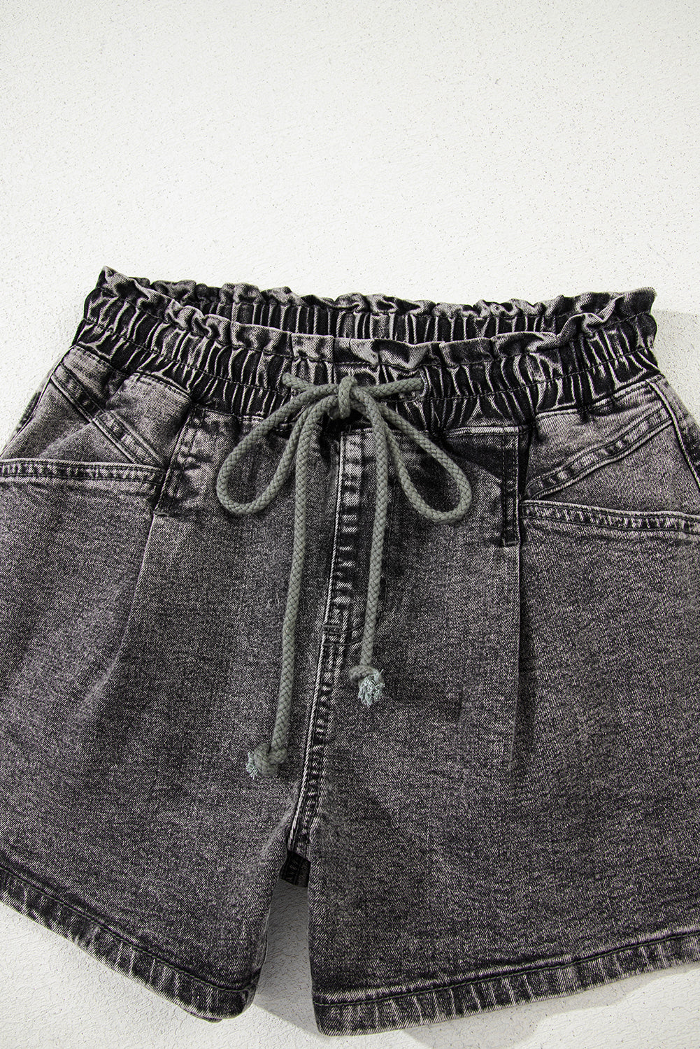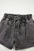 Sale High-rise Drawstring High Waist Casual Denim Shorts with Pockets