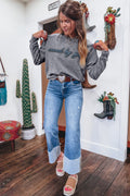 High-rise saved by grace Letter Embroidery Mineral Wash Loose Sweatshirt