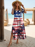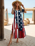 Independence Day Patriotic Loose Fit Graphic Geometric Flag Short Sleeve Crewneck Maxi Dress