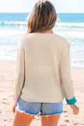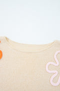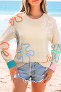 Jet Stream Contrast Flower Detail Colorblock Cuffed Loose Sweater