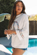 Sale Jet Stream Floral Peace Sign Graphic Drop Shoulder Wide Sleeve Casual Top
