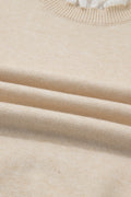 - This knit pullover sweater is perfect for casual outings.Featuring a soft knit texture with delicate lace details.Ribbed patchwork cuffs designed with gold-tone buttons.The elegant sweater pairs well with any outfit for a refined look.