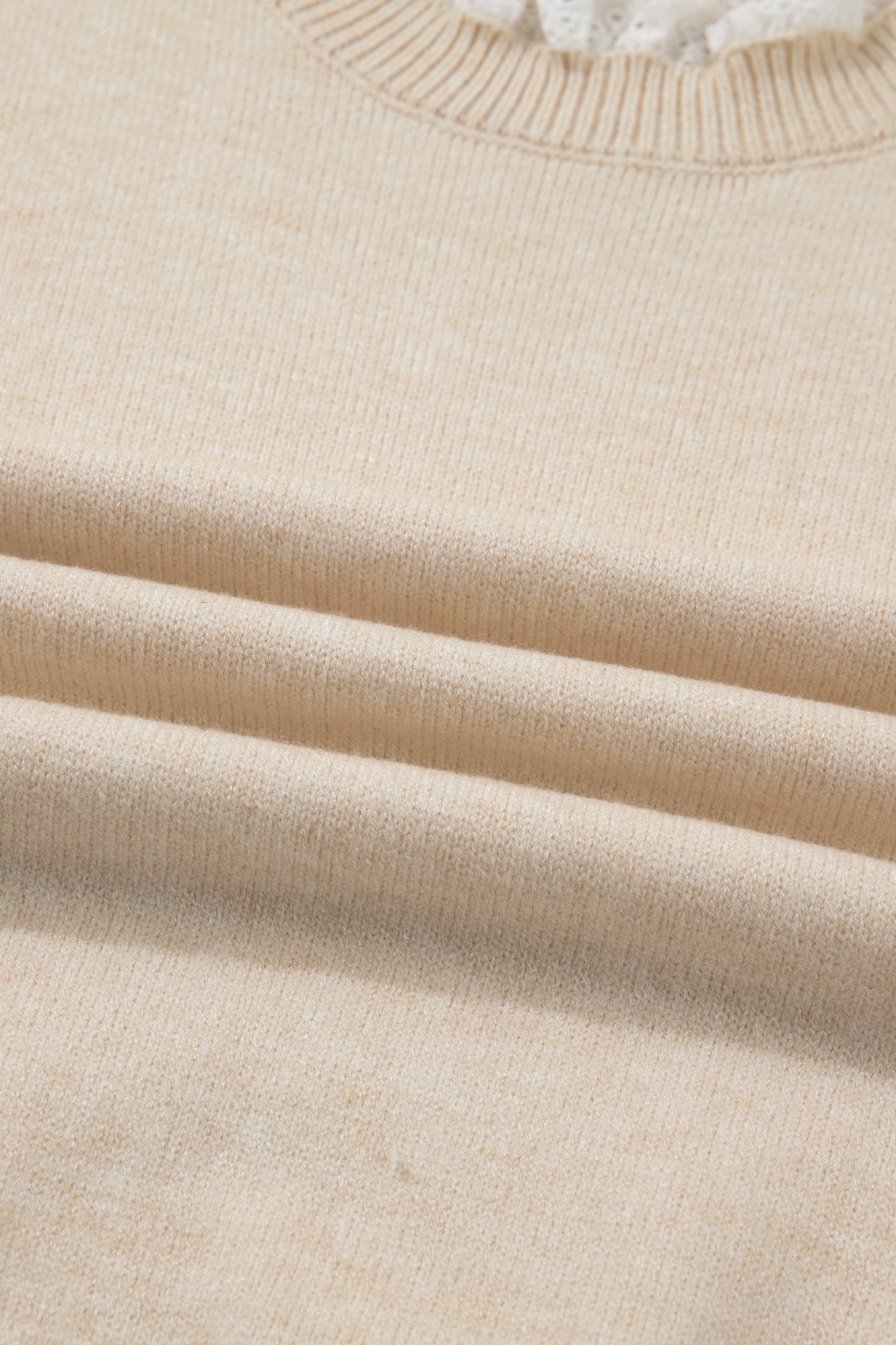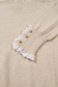 Jet Stream Lace Trim Patchwork Buttoned Cuffs Loose Sweater