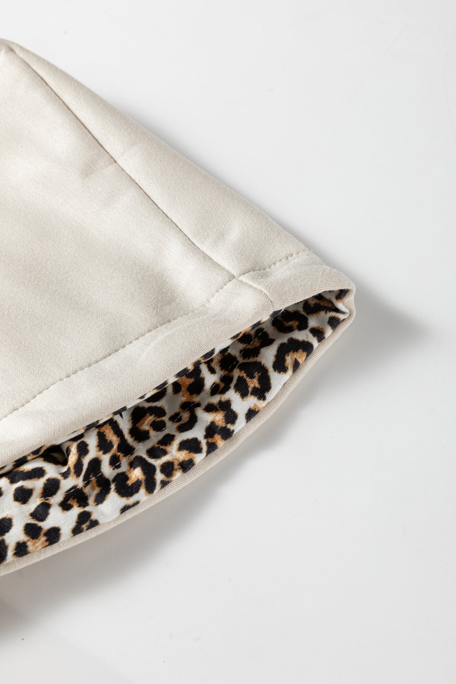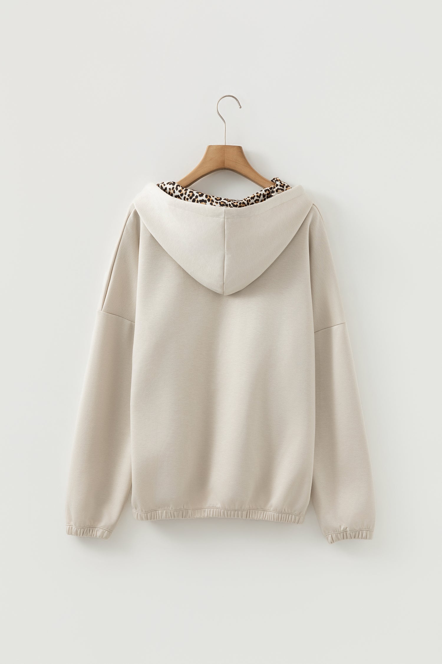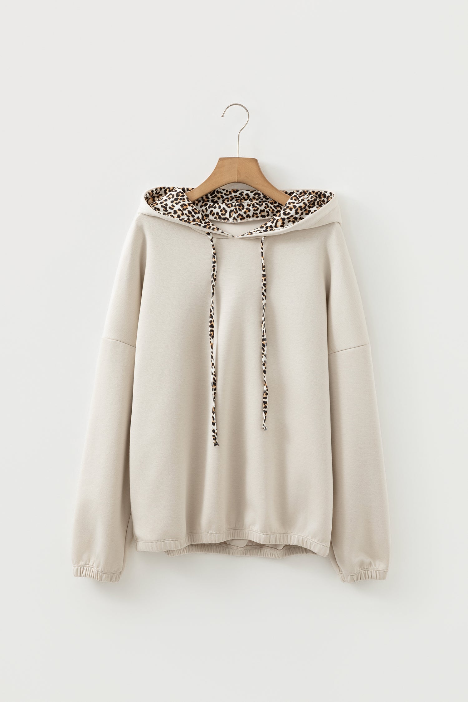 Jet Stream Leopard Contrast Drawstring Hood Drop Shoulder Loose Top