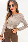 Jet Stream Polka Dot Boat Neck Knit Long Sleeve T Shirt