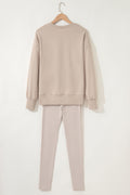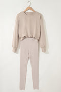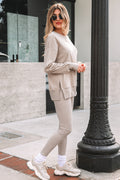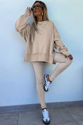 Jet Stream Solid Color Oversize Slit Sweatshirt Ribbed Leggings 2pcs Set