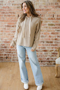 Apricot Oversize Drop Shoulder Reversible Mock Neck Sweatshirt
