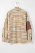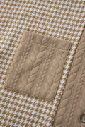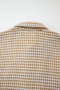 Khaki Houndstooth Color Contrast Textured Patchwork Loose Shacket