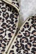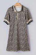 Khaki Leopard Print Zip Neck Striped Webbing Patchwork T Shirt Mini Dress