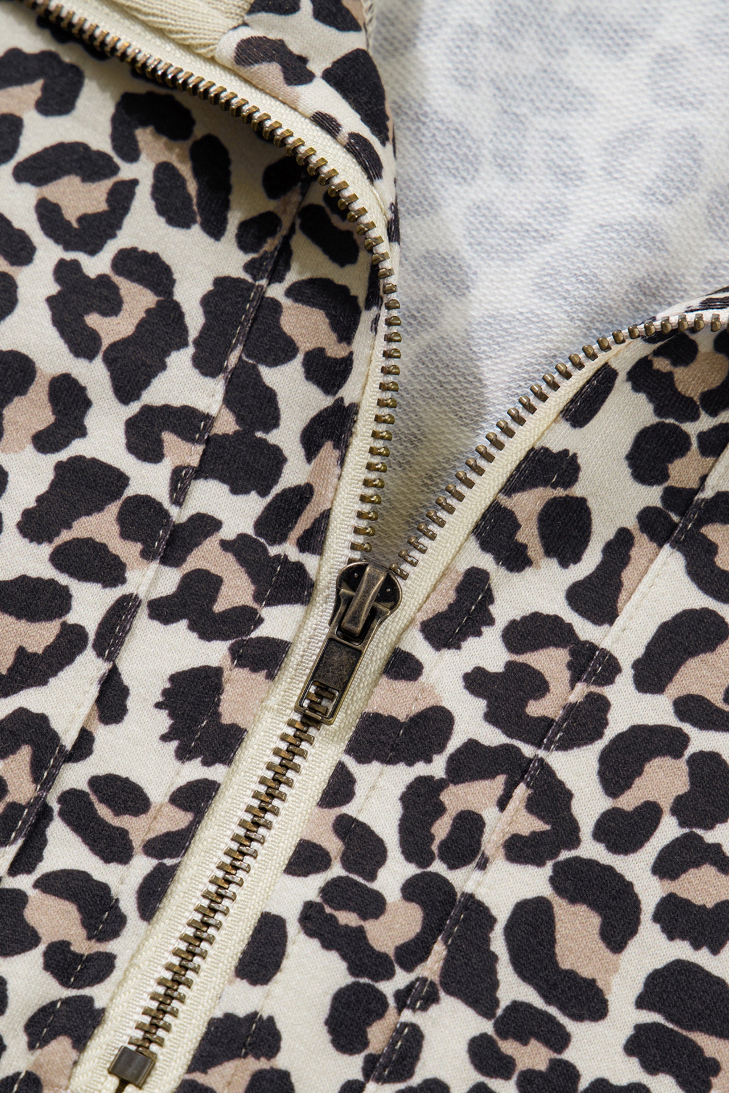 - Bold leopard print mixed with sporty striped webbing.Zip design adds a modern, adjustable neckline.Mini length offers a chic, flattering silhouette.Easy to style for casual outings or statement weekends.