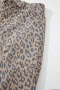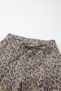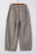 Khaki Leopard Printed Drawstring Waist Pocketed Wide Leg Jeans