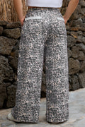 Khaki Plus Size Leopard Print Raw Edge Patch Pocket Drawstring Loose Pants