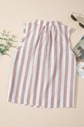 Khaki Stripe Casual Button Down Sleeveless Shirt