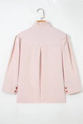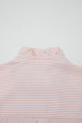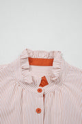 Khaki Stripe Color Block Patchwork Detail Frilled Collar Button Down Shirt