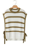 Khaki Stripe Tie Open Side Sweater Knitted Top