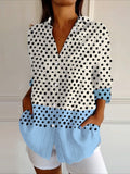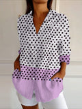 Lapel Multi Color Block Long Sleeve Regular Micro Stretch Loose Blouse