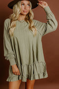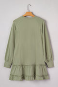 Laurel Green Jacquard Frilled Ruffled Long Sleeve Mini Dress