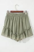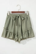 Laurel Green Textured Tie Waist Ruffle Hem Shorts