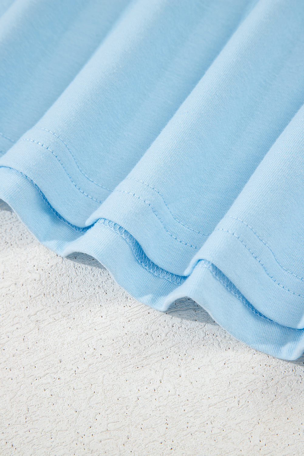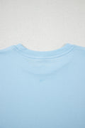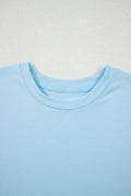 Sale Light Blue Bright Casual Plain Crew Neck Tee