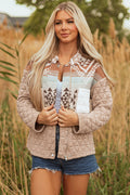 Light French Beige Aztec Quilted Patchwork Western Fashion Jacket