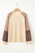 Khaki Leopard Print Patchwork Crew Neck Sweatshirt