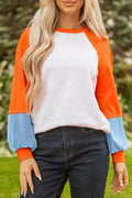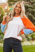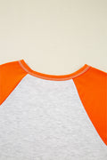 Light Grey Color Block Raglan Sleeve Contrast Stitching Loose Fit Top