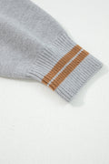 Sale Striped Botton Crew Neck T-Shirt, Elegant Long Sleeve T-Shirt