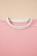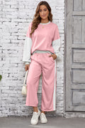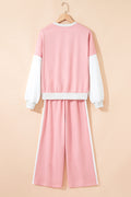 Light Pink 2pcs Color Block Pullover Loose Pant Set