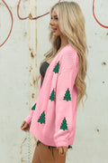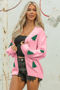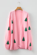 Light Pink Christmas Tree Print Open Front Drop Shoulder Midi Cardigan