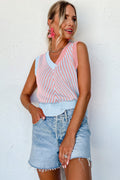 Sale Light Pink Contrast Chevron Knit V Neck Sweater Vest