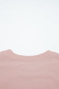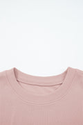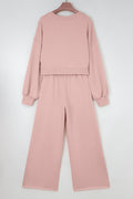 Light Pink Drop Shoulder Puff Sleeve Crop Pullover Drawstring Wide Leg Pants Set
