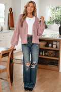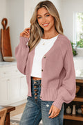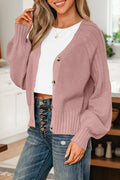Light Pink Mixed Texture Knit Button V Neck Sweater Cardigan