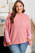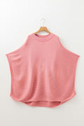 Light Pink Ribbed Knit Half Sleeve Plus Size Poncho Style Sweater