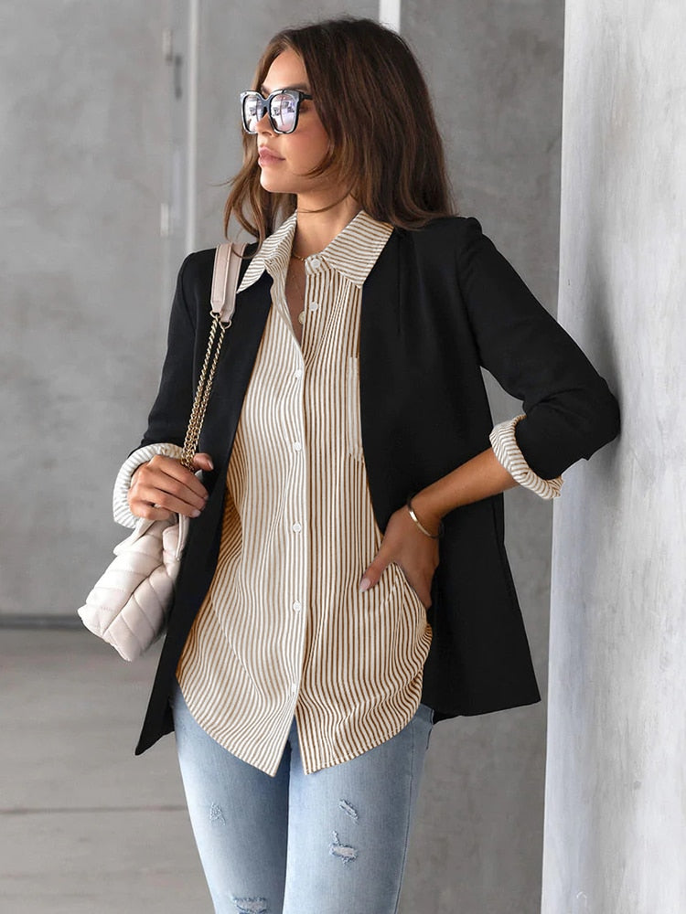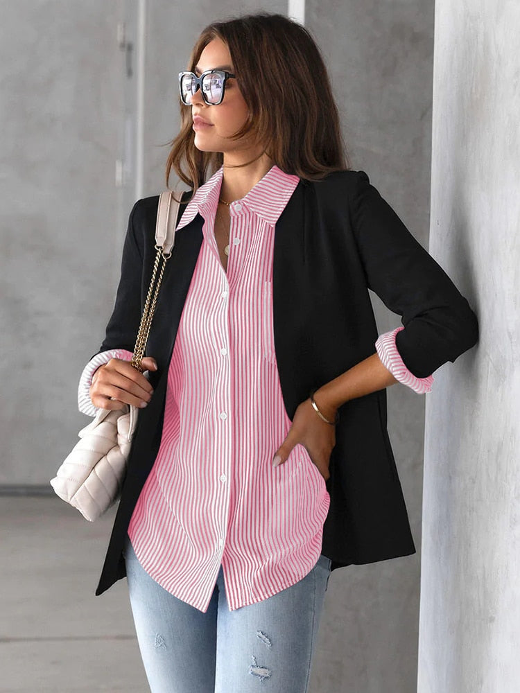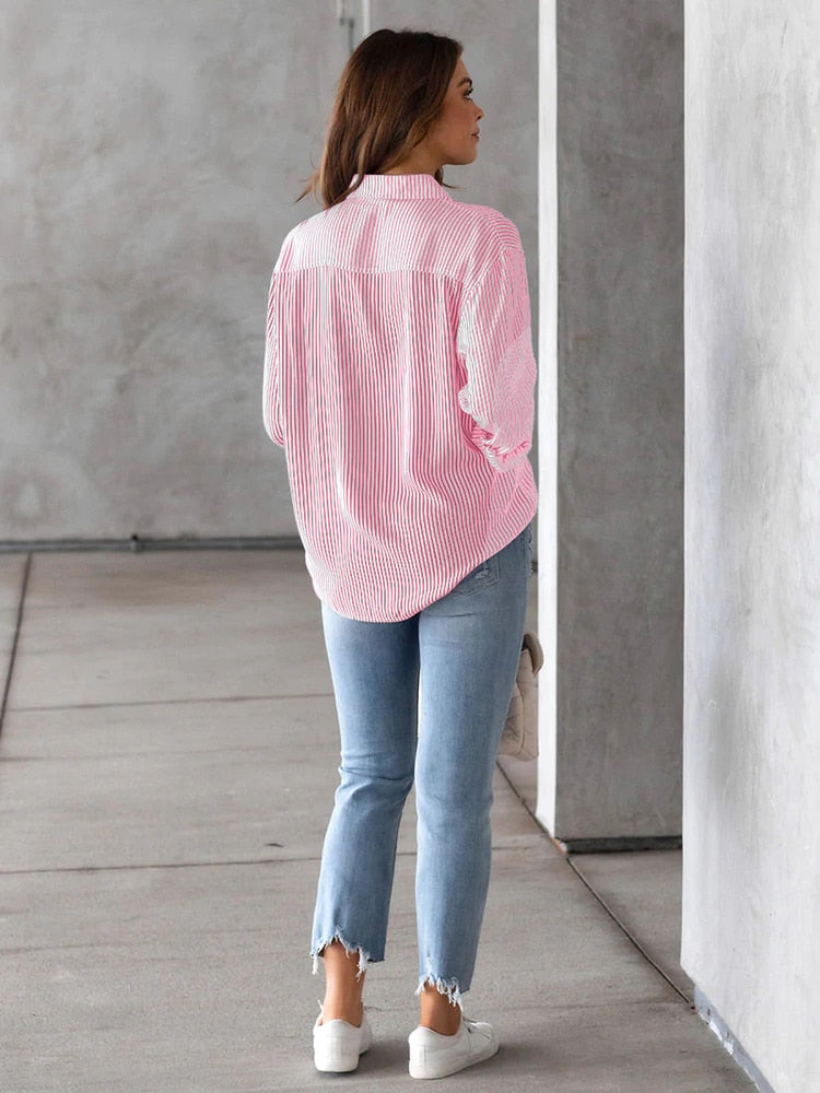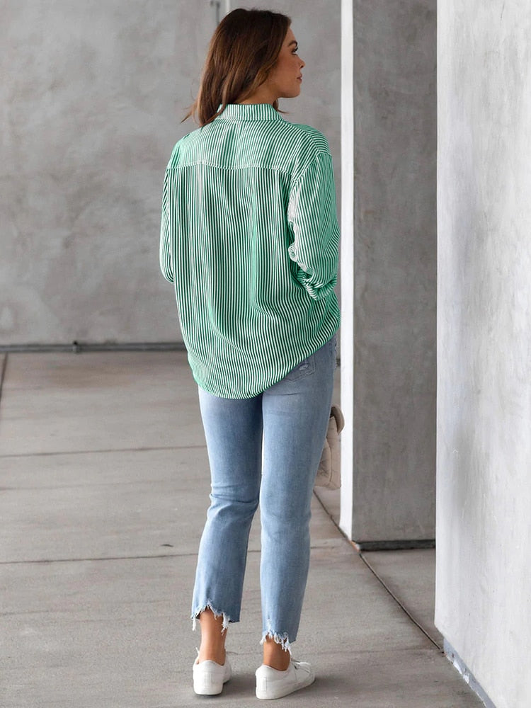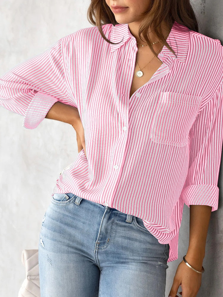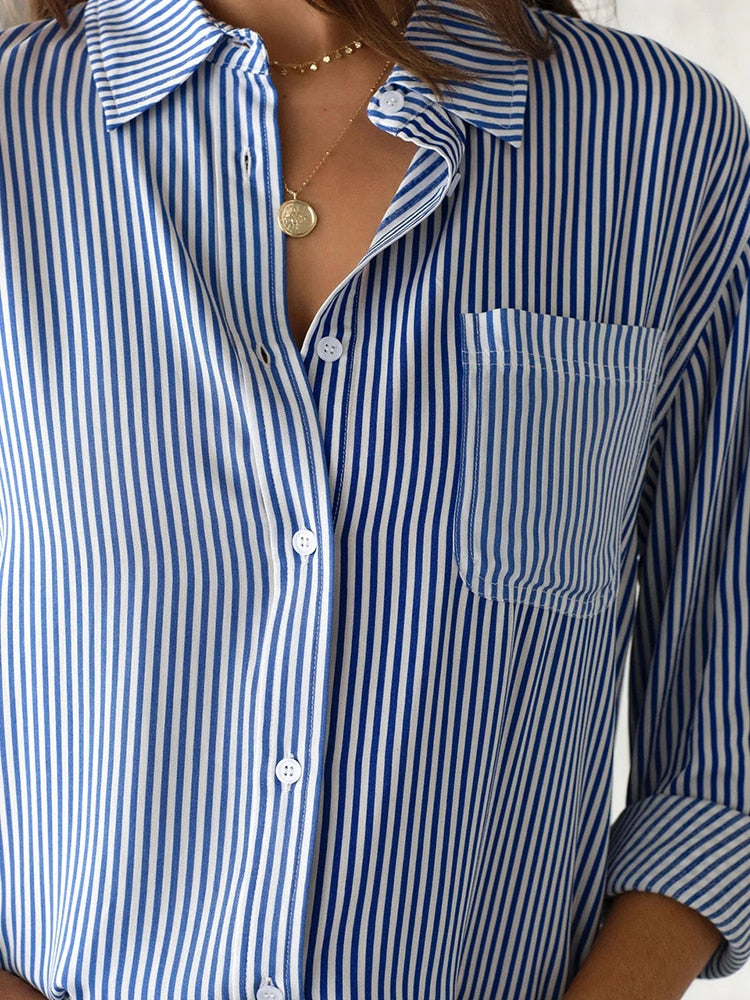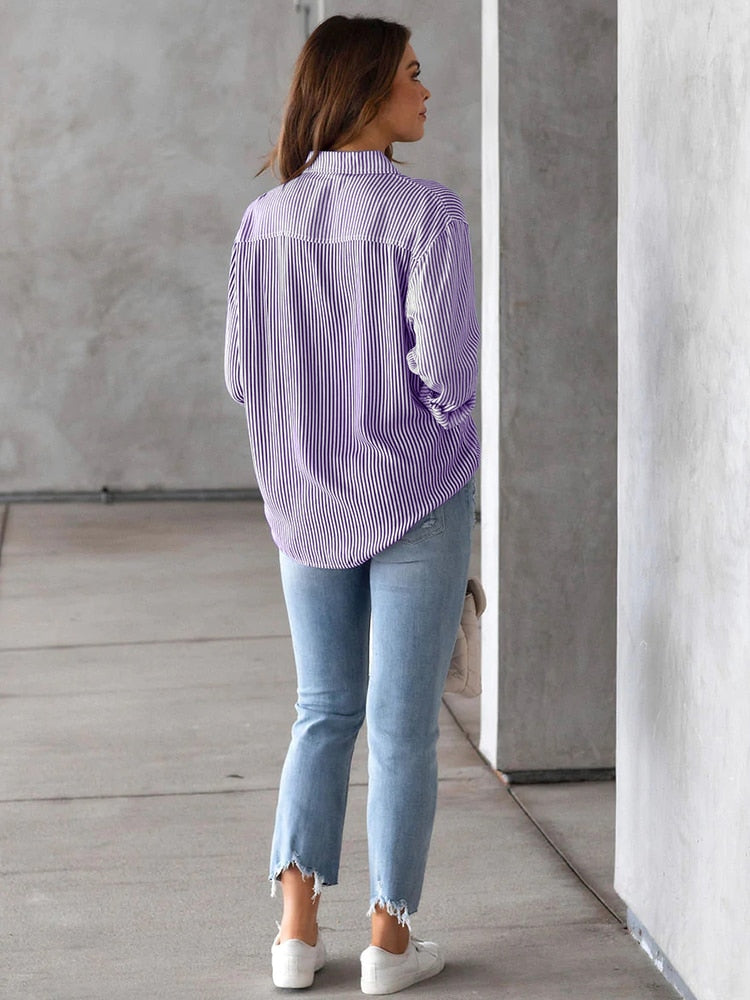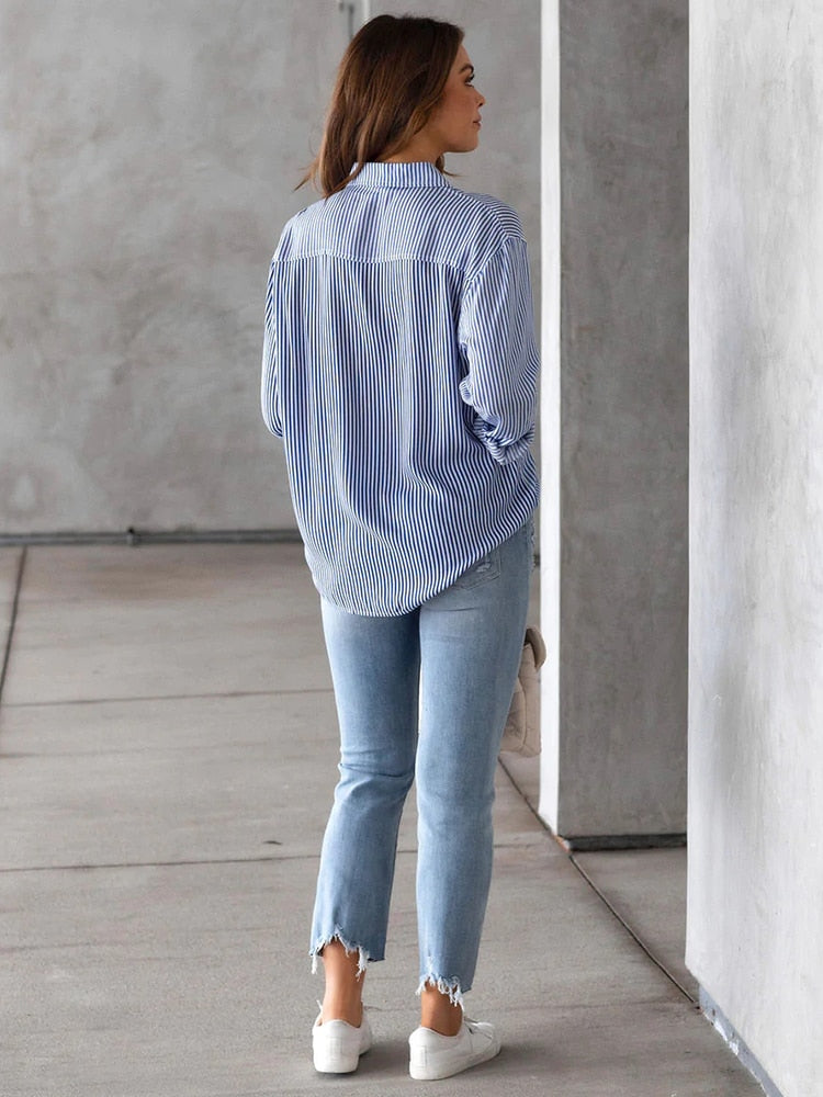 Sale Striped Long Sleeve Crew Neck Casual T-shirt