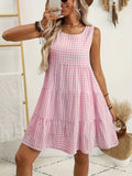 Loose Casual Flowing Sleeveless Plaid Dress