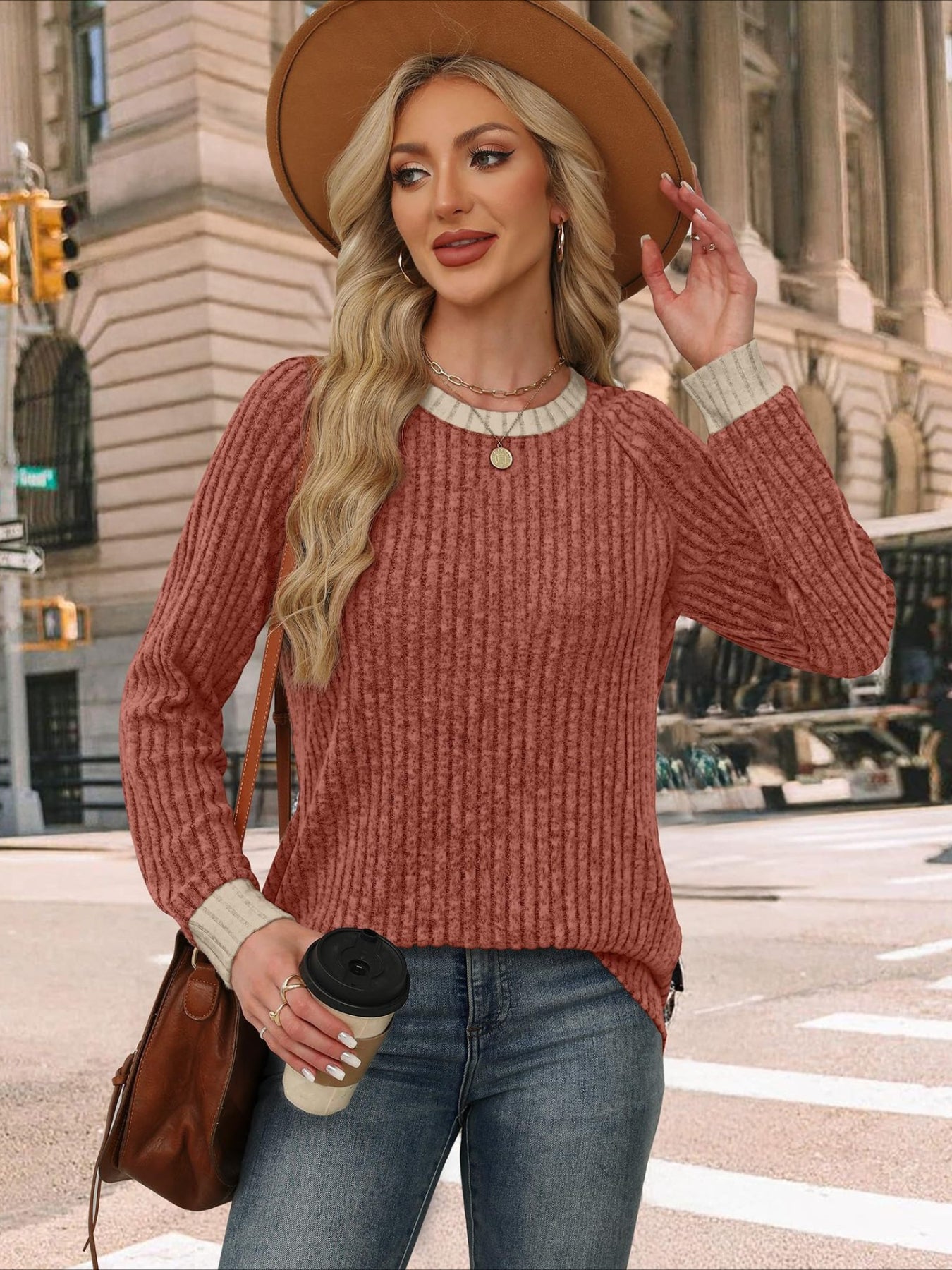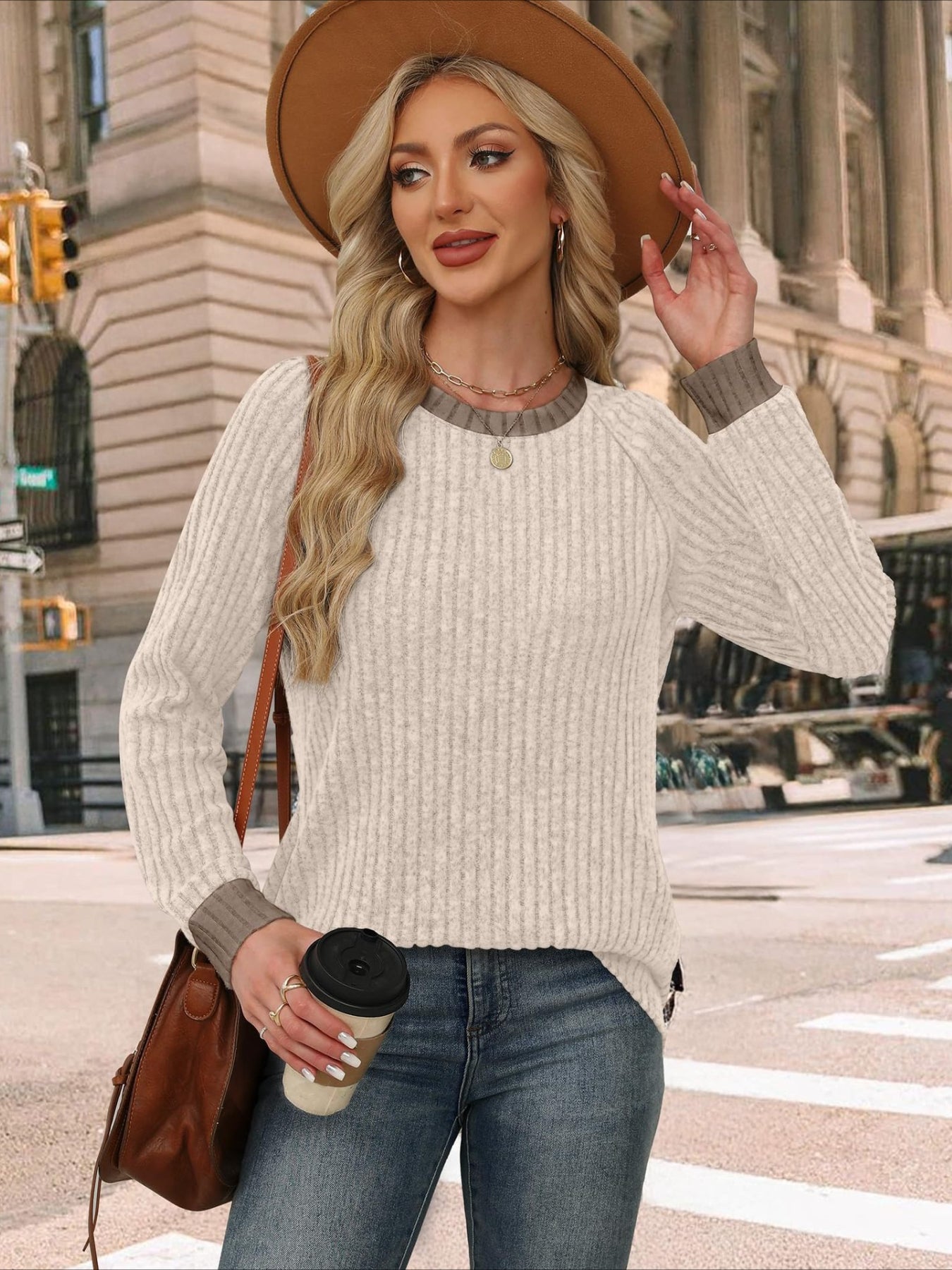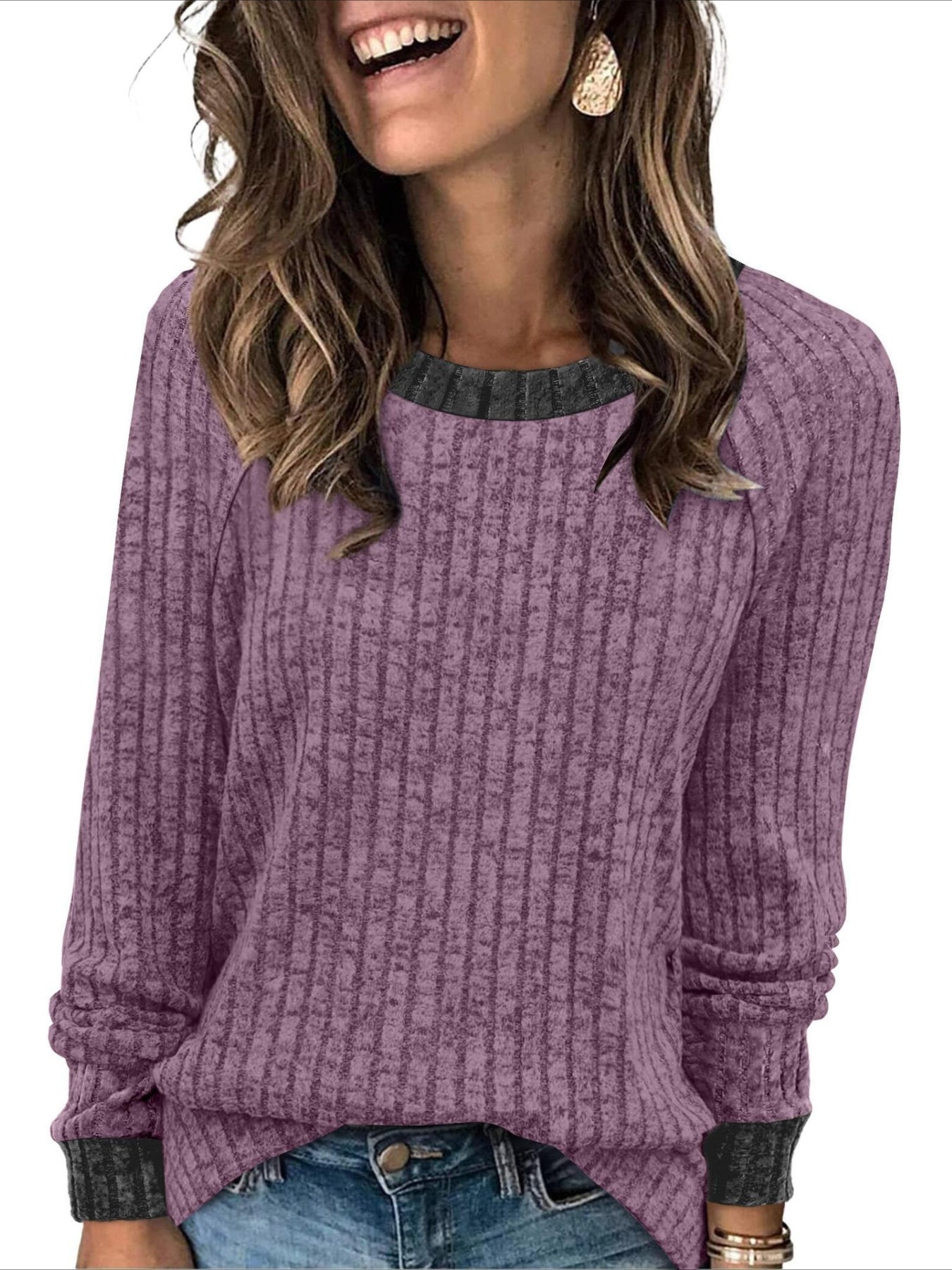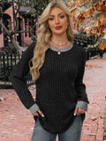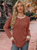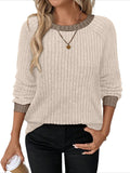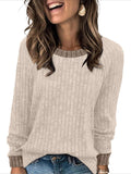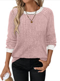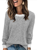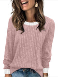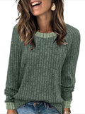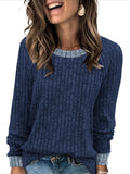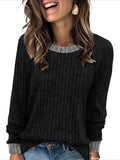 Sale Color Block Crew Neck T-shirt, Casual Long Sleeve Top